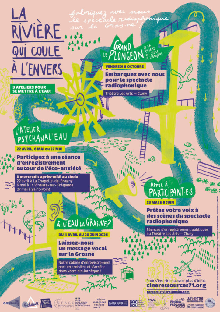 La Rivière qui coule à l’envers est un projet de création sonore participatif qui vise à faire le portrait de la rivière Grosne. Il est proposé par Christina Firmino et Julia Pinget, artistes intervenantes, en compagnonnage avec La Chahutte.